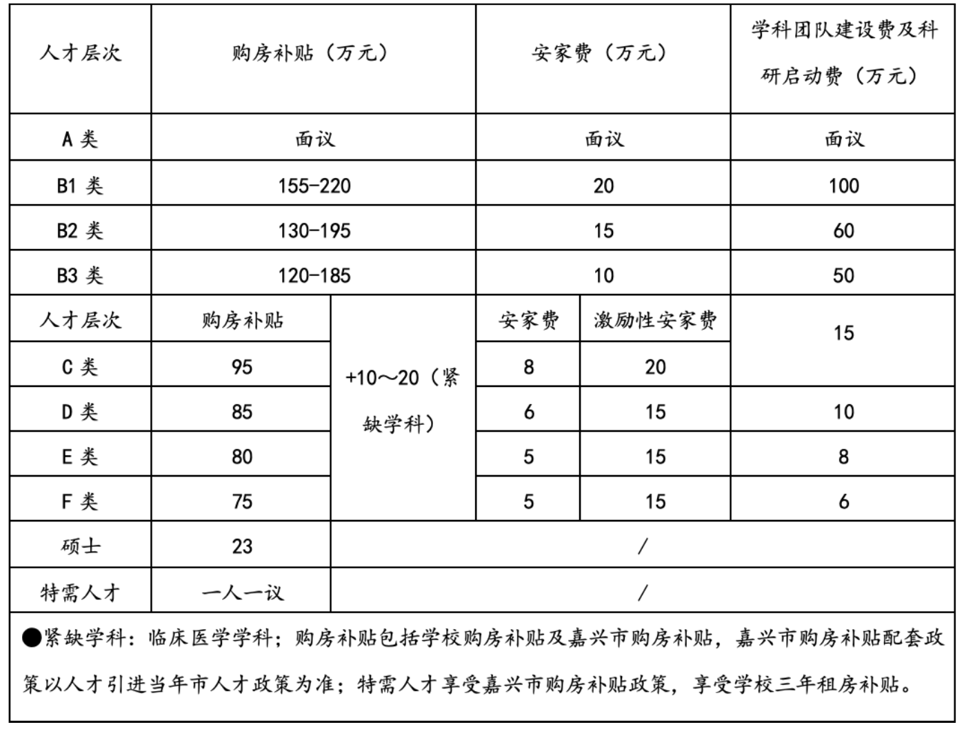 8. 购房补贴包括学校购房补贴及嘉兴市购房补贴。嘉兴市购房补贴配套政策以人才引进当年市人才政策为准。引进人才均可享受嘉兴市相关人才政策,按嘉兴市相关规定执行。
