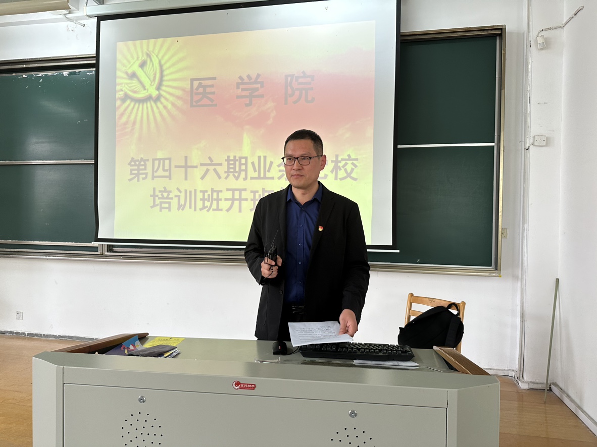2023年4月7日中午,9778818威尼斯举行第46期业余党校开班典礼,9778818威尼斯党委副书记李联钊老师、学工办主任赵丽萍老师出席,党校班主任江欢老师担任主持。