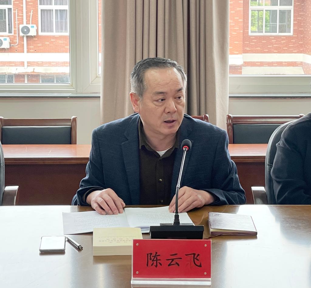 陈云飞就扎实开展主题教育进行部署。一要全面明晰目标要求,力争在凝心铸魂筑牢根本、锤炼品格强化忠诚、实干担当促进发展、践行宗旨为民造福、廉洁奉公树立新风等方面当先锋、争一流。要围绕“学思想、强党性、重实践、建新功”的总要求,坚持学思用贯通、知信行统一,把习近平新时代中国特色社会主义思想转化为坚定理想、锤炼党性和指导实践、推动工作的强大力量。二要牢牢把握总体安排,一体推动主题教育有力有序开展。要抓深理论学习促凝心铸魂,抓实调查研究促难题破解,抓好推动发展促实干争先,抓严检视整改促树立新风,抓细建章立制促常态长效。三要切实加强组织领导,确保主题教育走深走实。要压紧压实工作责任,示范带动确保成效,从严从实整改整治,注重加强宣传引导,坚决防止形式主义。