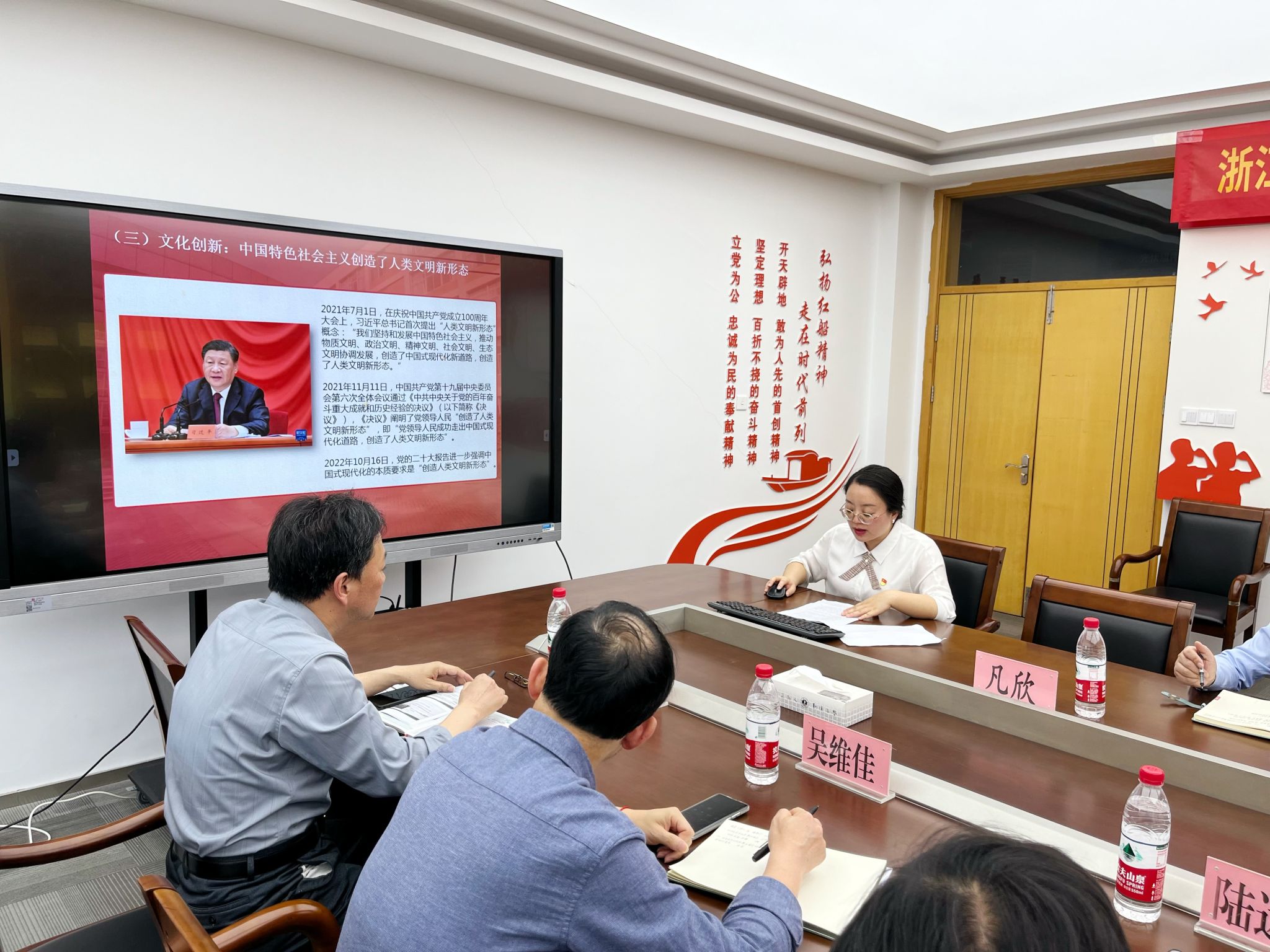 继续教育学院副院长李郁明解读了习近平文化思想的四重维度:历史维度、理论维度、实践维度、世界维度。习近平文化思想是习近平新时代中国特色社会主义思想的文化篇,是新时代党领导文化建设实践经验的理论总结,极大地丰富和发展了马克思主义文化理论,突出了文化在党的理论创新中的重要地位。