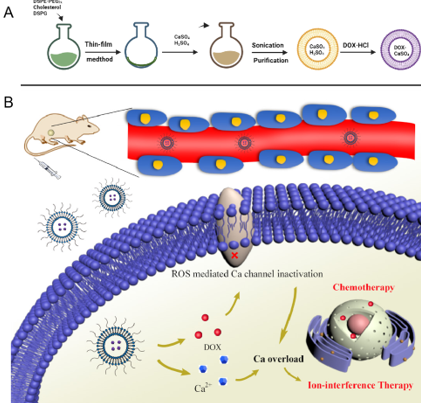 传统的离子干扰疗法(IIT)主要通过升高细胞内钙离子(Ca²)水平来触发细胞凋亡,从而实现抗癌效果。然而,以往的研究多依赖于钙基无机化合物,如过氧化钙和碳酸钙,这些化合物的生物安全性仍有待验证。因此,开发一种更加安全有效的载药技术成为当务之急。