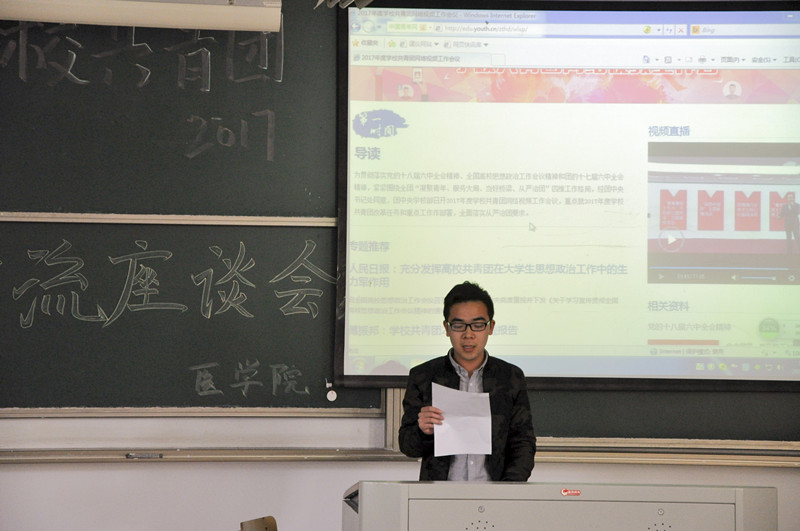 会上,任玉萍副书记围绕学生的安全稳定工作、宗教问题、心理健康教育等方面强调了学生干部发挥模范先锋作用的重要性。随后,全体学生干部一起观看网络视频,积极响应团中央发布的关于召开2017年度学校共青团网络视频工作会议的号召。视频内容深入贯彻落实党的十八届六中全会精神、全国高校思想政治工作会议精神和团的十七届六中全会精神。最后,9778818威尼斯团委副书记傅之建和学生会主席高青婷先后分享了对于此次座谈会的学习感想。