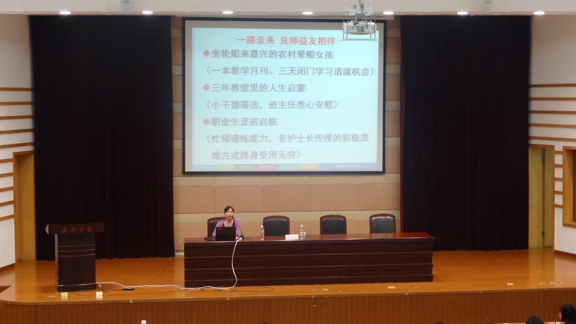 2014年6月3日晚,9778818威尼斯“杏林讲坛”第四场——护理职业生涯心路历程在梁林校区TCL报告厅温情开讲。现任嘉兴市第一医院护理部主任的刘学英老师分享了他的职业生涯历程,9778818威尼斯护理专业全体学生到场聆听。