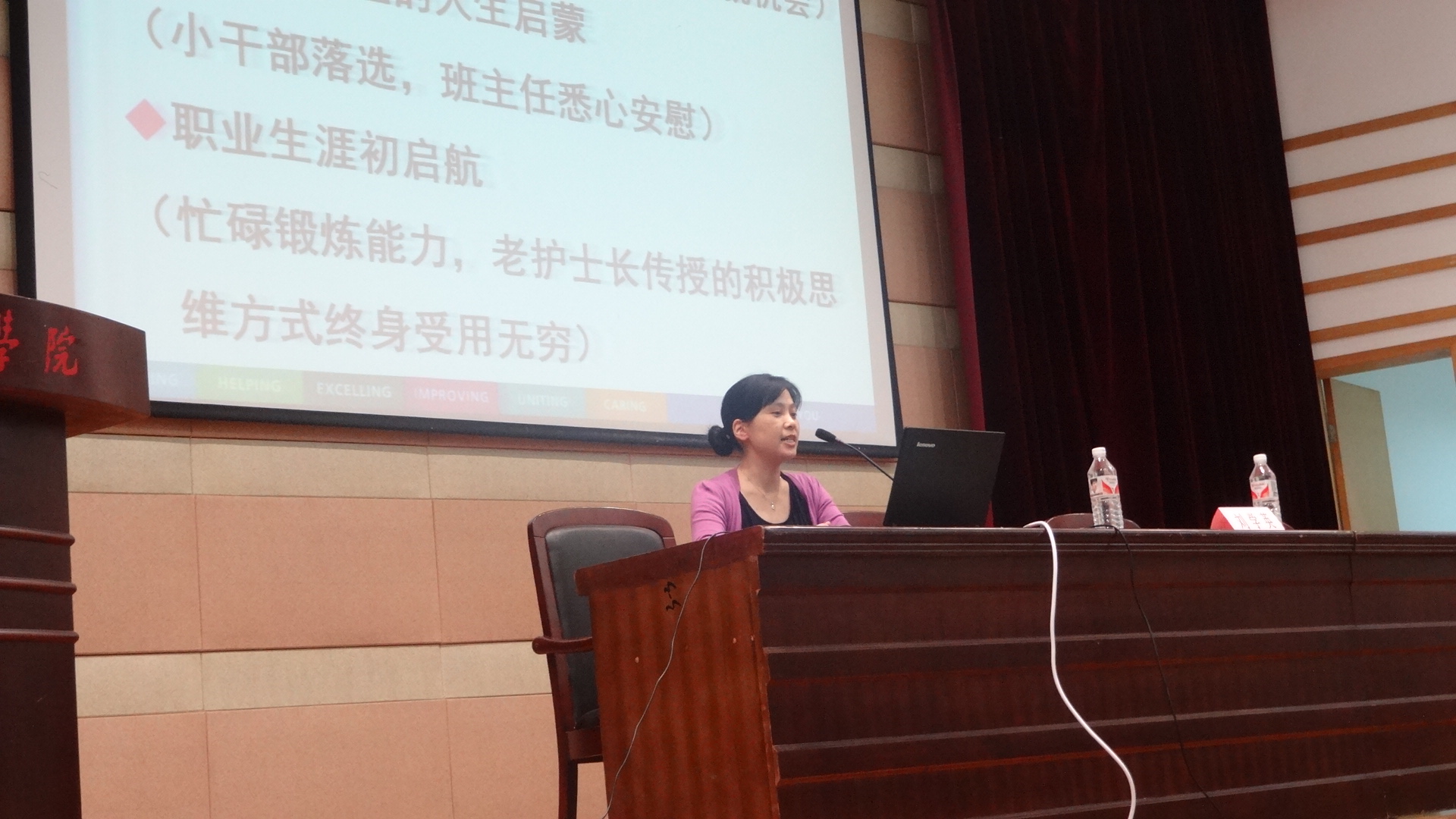 作为校友与前辈,刘主任在多年的护理生涯中感受良多,从良师益友的一路相伴、自己的亲身经历等六个不同的视角为大学生阐释了人际沟通中互帮互助、平等真诚的重要性。“成功别人,成就自己,珍惜当下,拥抱未来”、“授人玫瑰、手留余香”是护士们应当具的优良品格,刘主任的每一句话语都深深烙在每一位同学的心中。丰富多彩的相片为同学们展现出独特的英国进修之行,让同学们在愉快的笑声中开拓见识。整场讲座为同学们描绘出了当下的护理图景,在聆听中了解护理现况,用心体会护理工作的酸、甜、苦、辣,让同学们对护理工作有了一个全新的认识。