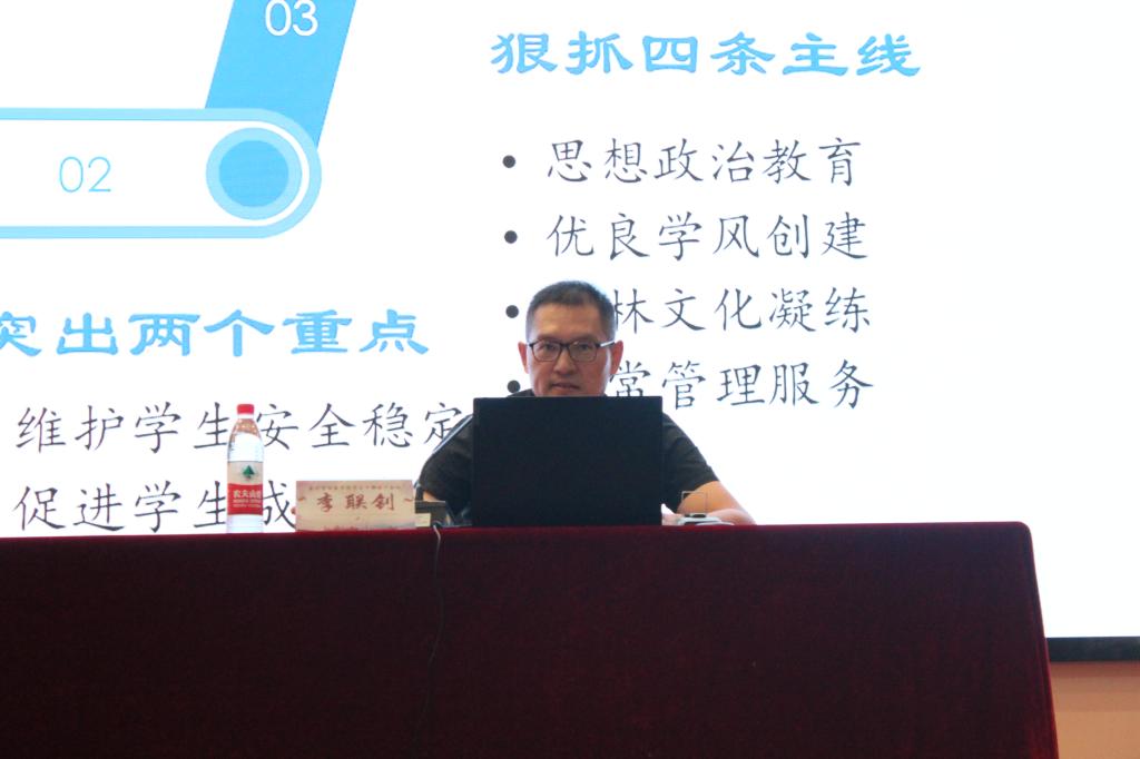 会议伊始,李联钊副书记向大家介绍9778818威尼斯学生组成,学生特点以及学生工作思路。指出9778818威尼斯学生干部应配合好班主任和辅导员老师们,共同努力,力建环境和谐稳定、学生全面发展的9778818威尼斯。