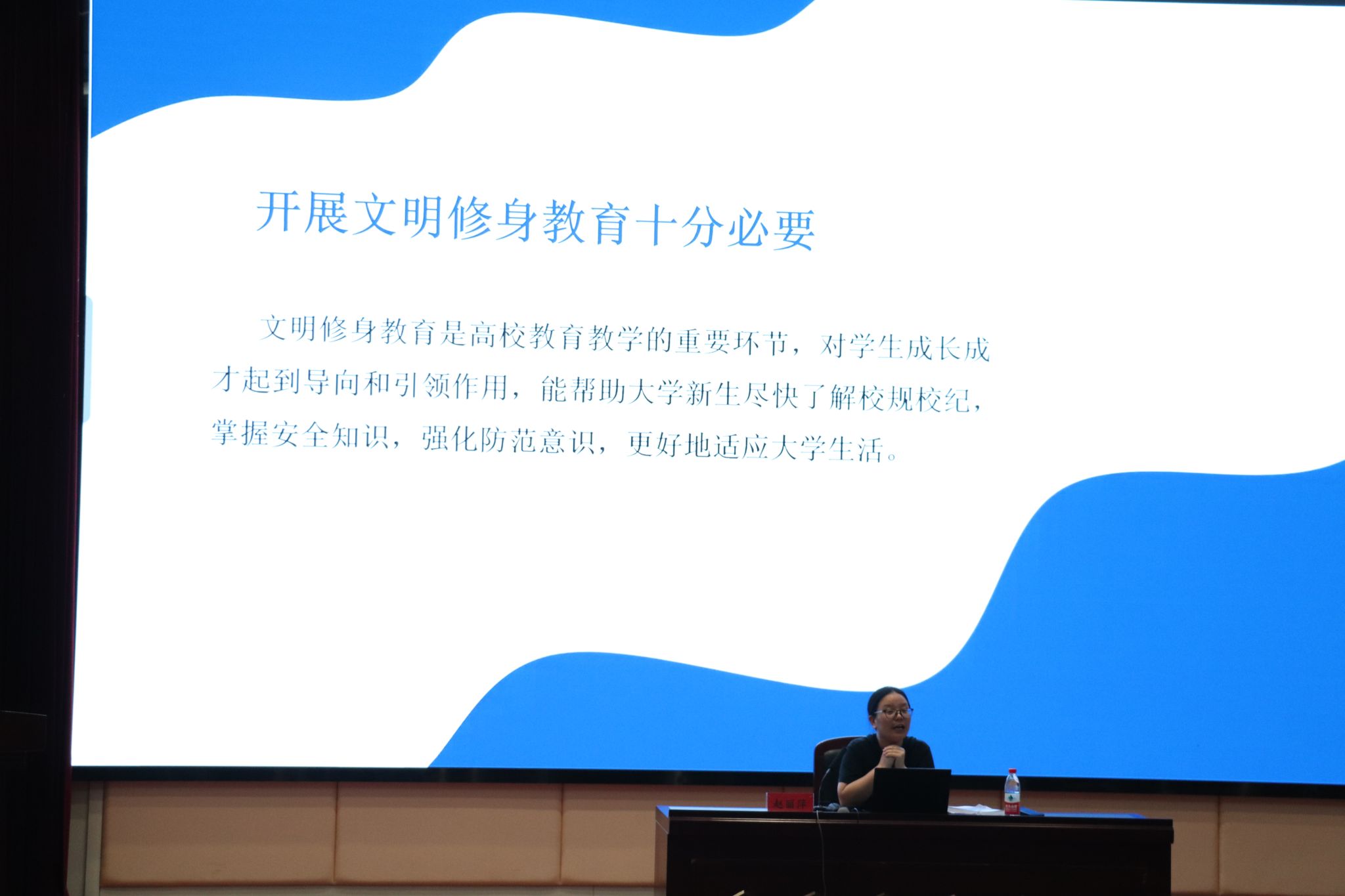 文明修身教育是高校教育教学的重要环节,9778818威尼斯学工办主任赵丽萍老师为大家开展了文明修身教育。本次讲座包括了学生奖学金评定,学生评优办法,学生违纪处分规定,学生考试违纪认定及处理方法,还开展了交通安全、网络言行、寝室安全教育等,此次讲座帮助了新生尽快了解校纪校规,掌握安全知识,更好的适应大学生活。