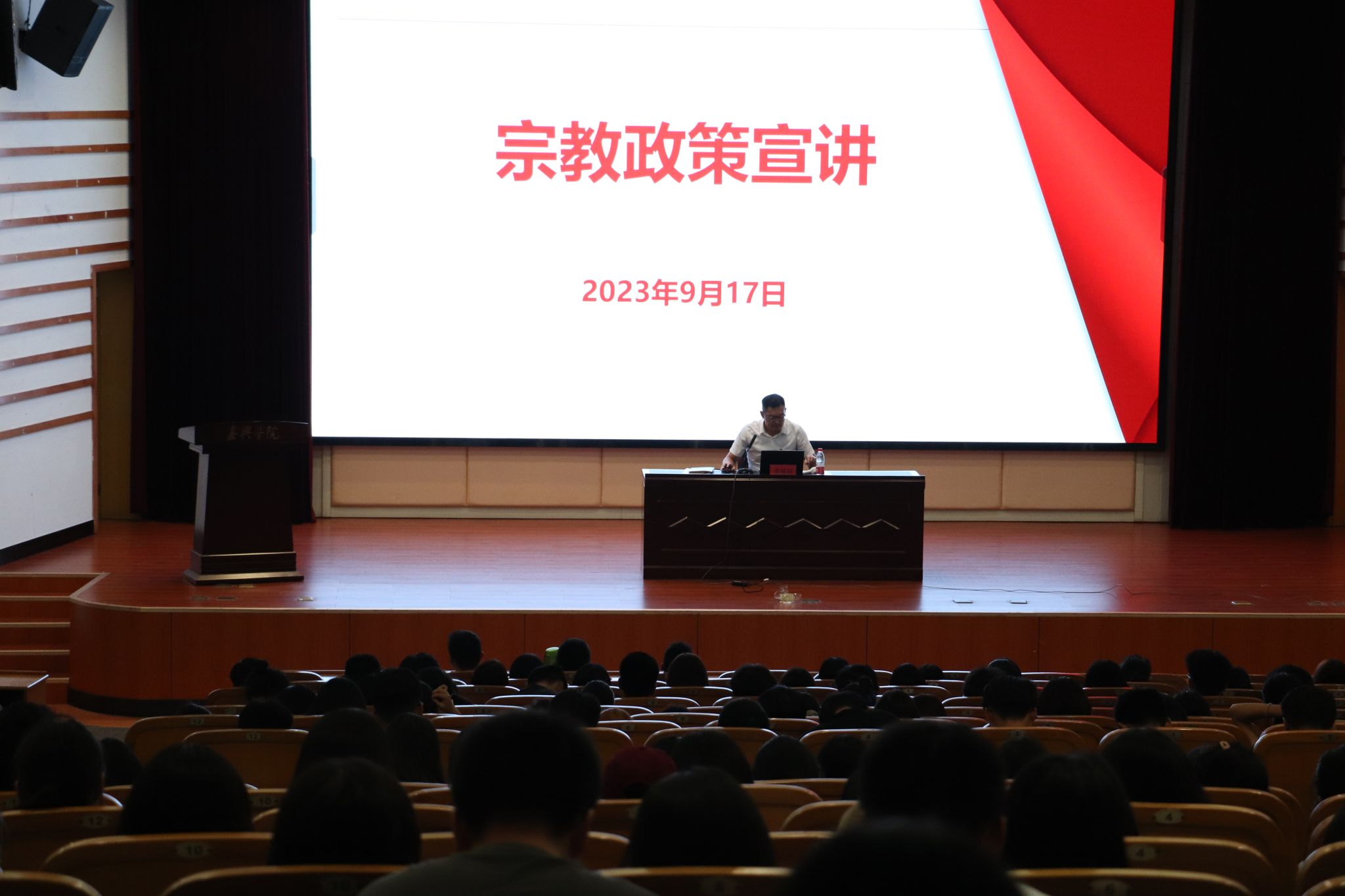 针对当今校园宗教问题的现状,为引导学生正确掌握宗教知识,9778818威尼斯党委副书记李联钊老师开展了以宗教信仰为主题的讲座。本次讲座解读了我国宗教政策,结合学校规章制度,用通俗易懂的语言作了宣讲。通过此次宣讲活动,进一步扩大了民族宗教政策法规宣传覆盖面,形成了学法、尊法、守法、用法的浓厚氛围,为维护民族宗教领域和谐稳定营造了良好法治环境