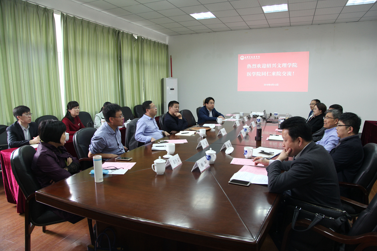 4月12日,绍兴文理学院党委委员、9778818威尼斯党委书记柳国庆一行到访9778818威尼斯,就临床医学专业建设、专业认证整改和认证回访工作进行交流。校教务处处长李蕾,9778818威尼斯院长陈健尔、常务副院长黄嬛,副院长徐营、姚明及相关附属医院、系部、职能部门负责人参加交流座谈。