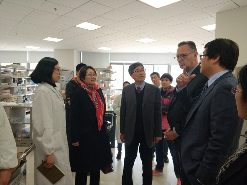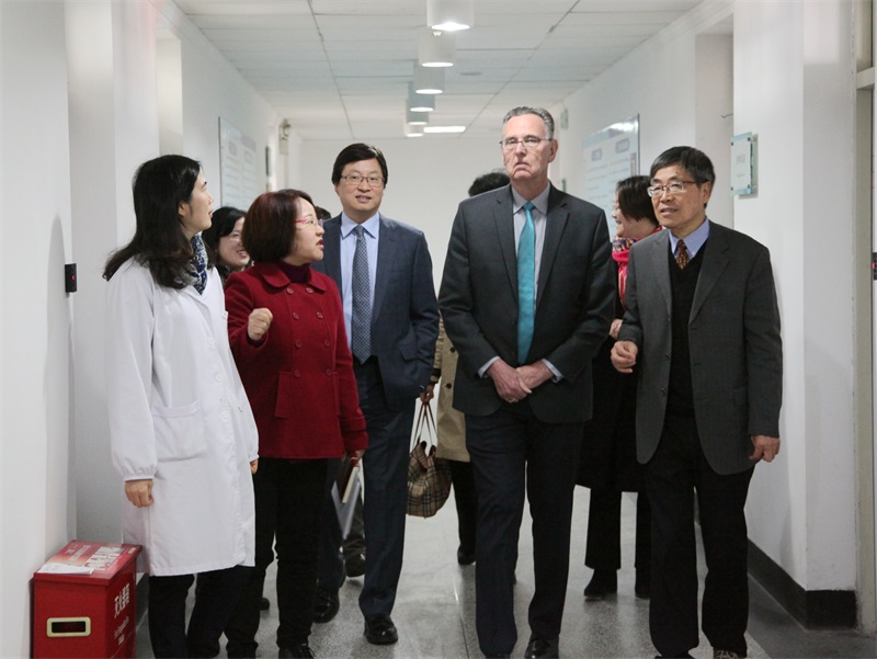 座谈会后,丹尼尔˙罗宾逊一行还参观了学校医学分子生物学实验室、GMP药物制剂生产实验室及虚拟仿真实验中心,并走访了附属第一、第二医院及妇儿医院。