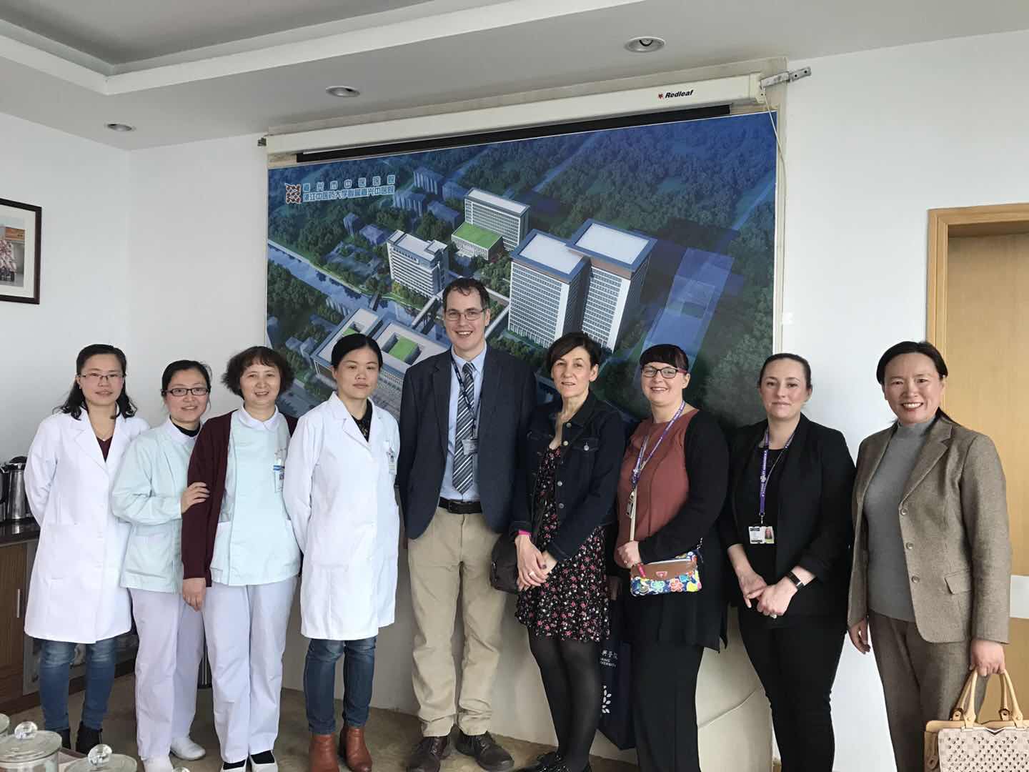 Sean Mackay一行参观了我校虚拟仿真实验室和临床技能中心,同时深入《基础护理学》、《护理临床思维》和《护理心理学》课堂进行随堂听课。并走访我校附属第一医院、附属妇儿医院和附属中医院,体验中医诊疗技术,观摩我校护理临床教学,给予了高度评价。
