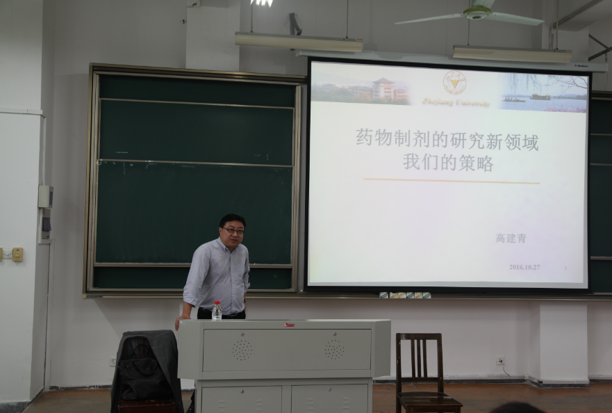 2016年10月27日下午三点,在梁林校区一号楼223教室,举行了一场学术讲座。讲座人是浙江大学药学院副院长高建青教授,高教授为9778818威尼斯教师和部分学生讲了一场“新型药物/基因传递系统进展及我们的策略”为主题的学术报告。