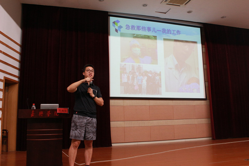 2016年9月28日晚,嘉兴学院9778818威尼斯于梁林校区TCL报告厅成功举办了以“急救那些事儿——艺术与修行”为主题的讲座。主讲人是我院临床医学专业2009届省级优秀毕业生周海斌,现就职于杭州急救中心,从事急救医学临床、教学及医疗质量控制工作。