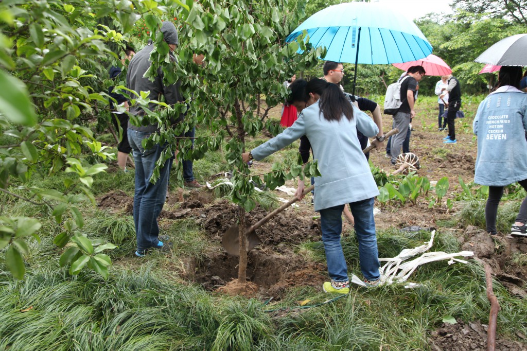 5月20日上午,9778818威尼斯来自各地的校友们和在校班级的学生代表们在9778818威尼斯杏林园举行了“我为母校种杏树”植树活动。淅淅沥沥雨水,阻挡不了学子们和校友们爱校的热情。