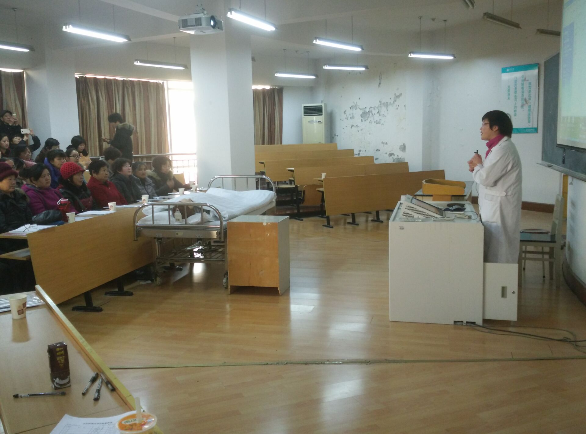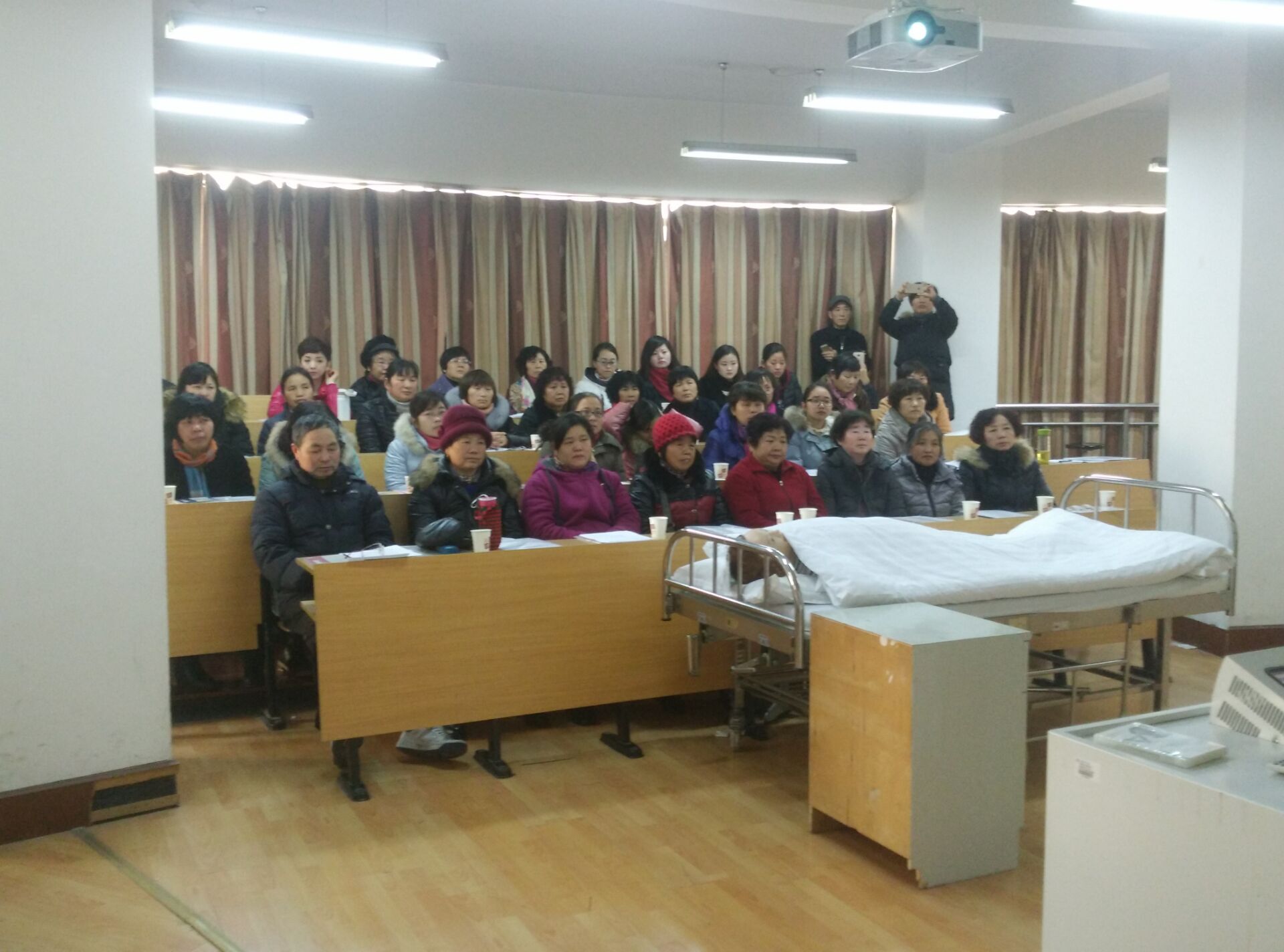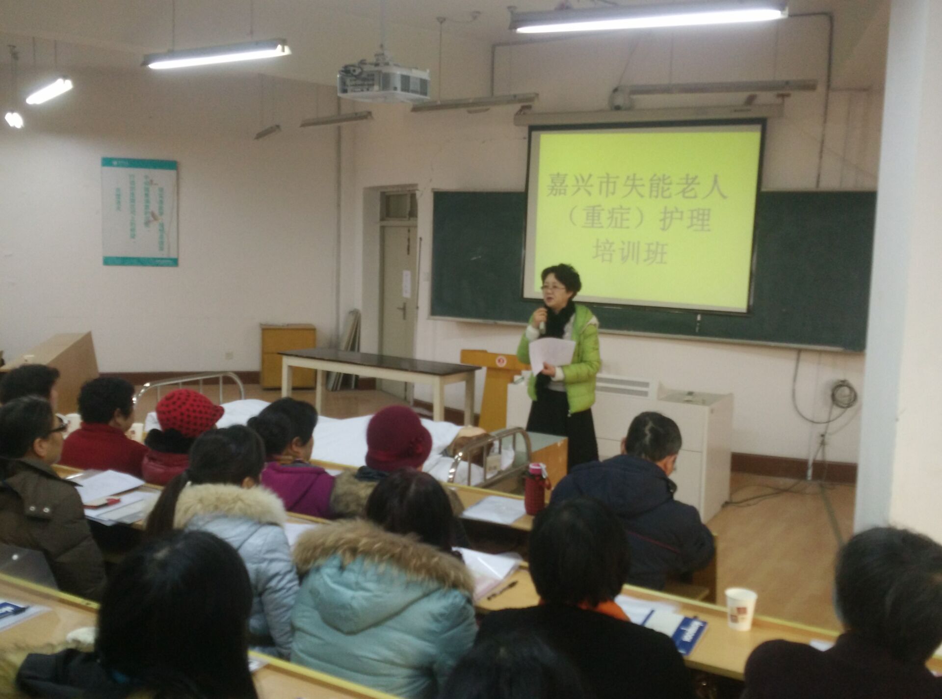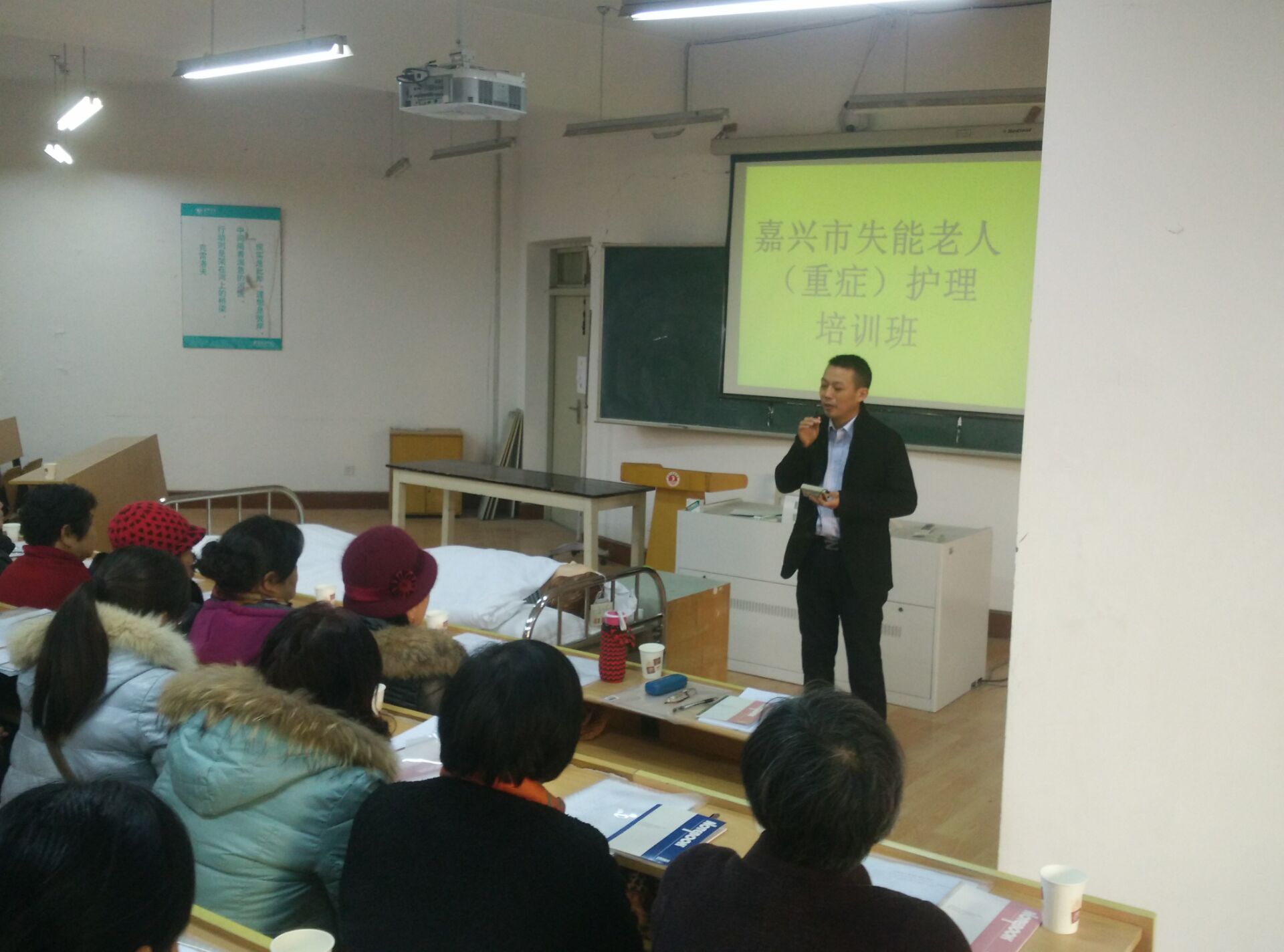 随着人口老龄化的不断加剧,失能老人的家庭越来越多,为更好的服务地方,回报社会,关怀失能老人及其家庭的生活,2016年1月9日,9778818威尼斯社会服务部在9778818威尼斯实验中心为嘉兴经济技术开发区的社区干部、失能老人家属举办了失能老人家庭护理培班,受到了当地社区和家庭的热烈欢迎,总共有70名学员参加了培训。培训内容主要有口腔护理、床上洗头、床上擦浴、压疮预防护理、大小便失禁的护理、便秘护理、饮食护理、协助翻身法、卧床病人换单法、脑卒中患者良肢位摆放、上下轮椅法。9778818威尼斯派出了优秀师资力量,同时提供了实验室给学员进行操作学习,有理论讲解和模拟真人的示教操作演练。学员们学的非常认真。培训结束后,学员们纷纷表示此次培训收获非常大,社会非常需要这方面的培训。