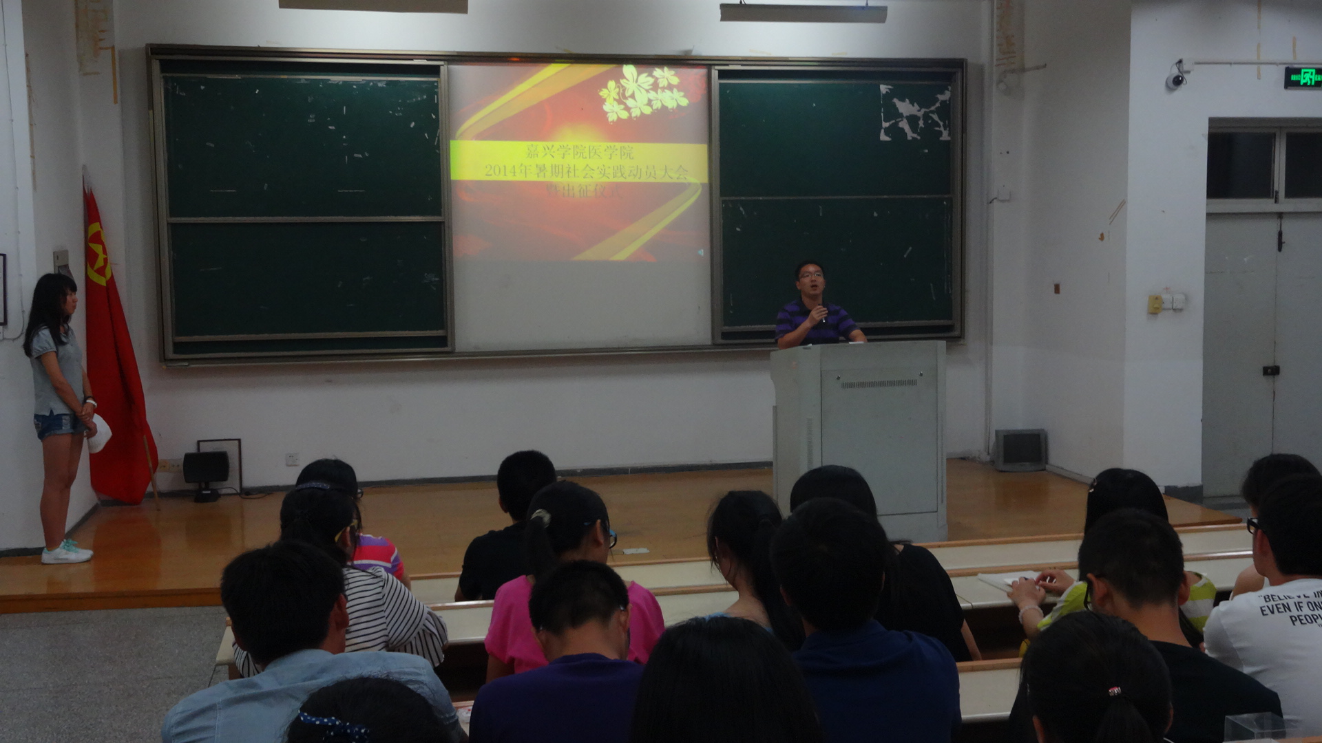 7月3日晚19:00,嘉兴学院9778818威尼斯2014年暑期社会实践动员大会暨出征仪式在梁林校区1号楼221教室开幕。9778818威尼斯党委副书记黄金珠老师,团委书记赵丽萍老师出席,暑期社会实践团队全体队员参加本次大会。