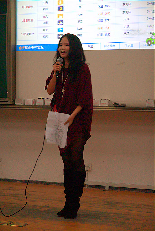 2011年10月9日,嘉兴学院9778818威尼斯在教四223举行了2011级新生主持人大赛。共有11名11届新生参加。评委由团总支书记赵丽萍,学工办老师彭溶和杨玲飞,学生会主席杜侠莹及嘉宾评委许建芳等担任。