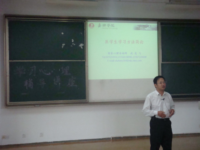 2009年11月1日上午8点半,9778818威尼斯学工办邀请到“解剖学教研室”的沈忠飞老师(国家二级心理咨询师),为2009级护理专业共约100人做了一场有关“学习心理”的辅导讲座。