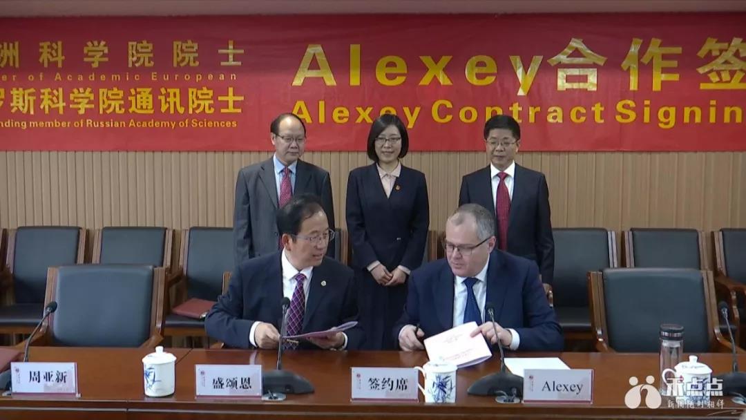仪式上,盛颂恩校长代表学校与Alexey(阿列克谢)院士签约,聘任Alexey(阿列克谢)院士为我校特聘教授和9778818威尼斯神经生物学研究中心主任。