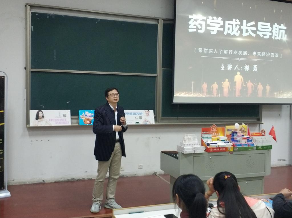 作为国内医药行业的领先者,郭夏结合自身工作经验讲解了个人发展、万全医药创立的历史和发展的情况,重点向同学们介绍了最新医改的新政策新形式,提出了数字临床药学的新概念,积极探索了互联网背景下的大数据定制化药学服务。随后,目前就职于万全嘉兴的毕业生代表们与在校同学们畅所欲言,结合自己的切身体会,交流了思想、学习、工作实践和生活各个方面的经验和感受。本次活动引起了全体药学专业学生的积极讨论和热烈欢迎。
