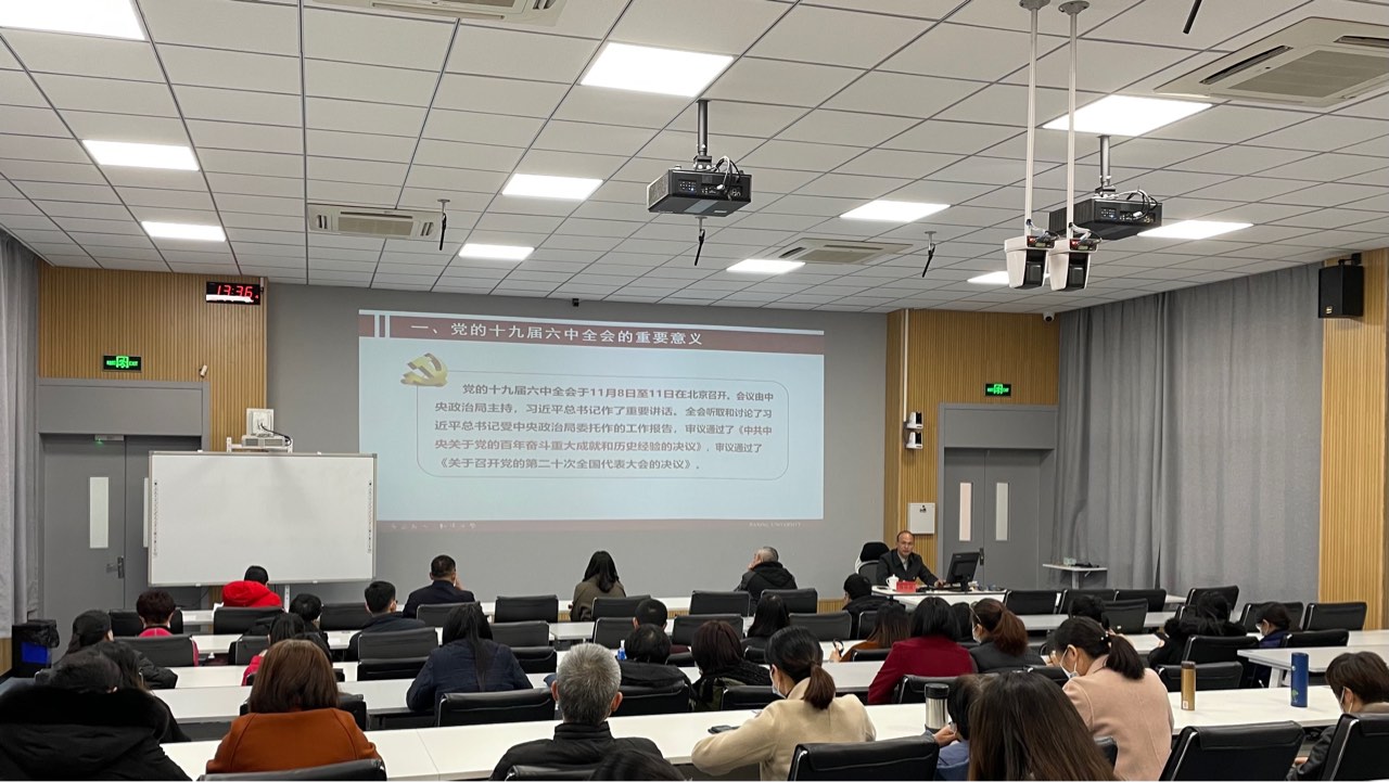12月16日下午,杨培强副校长到9778818威尼斯宣讲党的十九届六中全会精神。学院党政领导班子、全体教师党员以及部分教师代表参加,学院党委书记陈云飞主持会议。