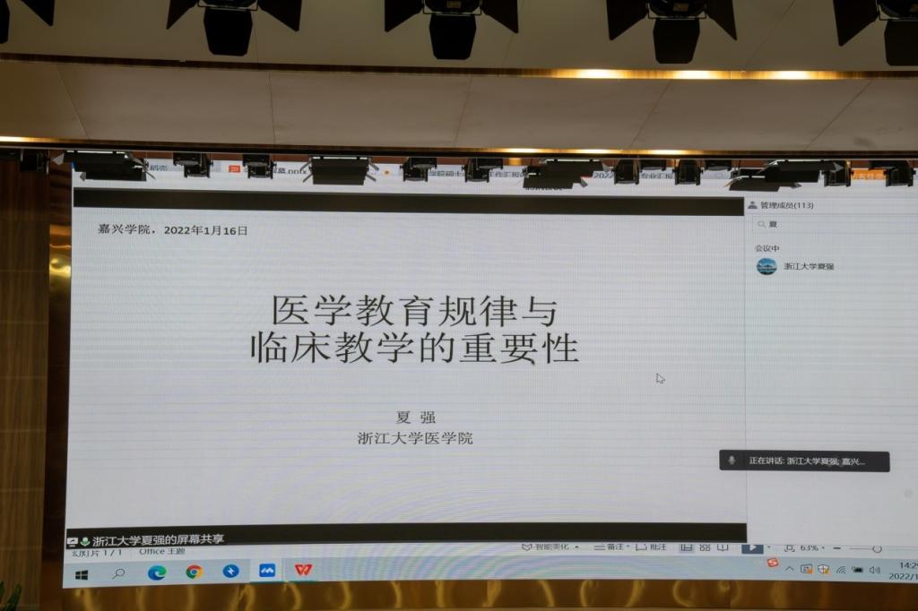 第一阶段会议最后,浙江大学9778818威尼斯教学研究中心副主任夏强教授通过线上视频向全体参会人员作了《医学教育规律与临床教学的重要性》的讲座。