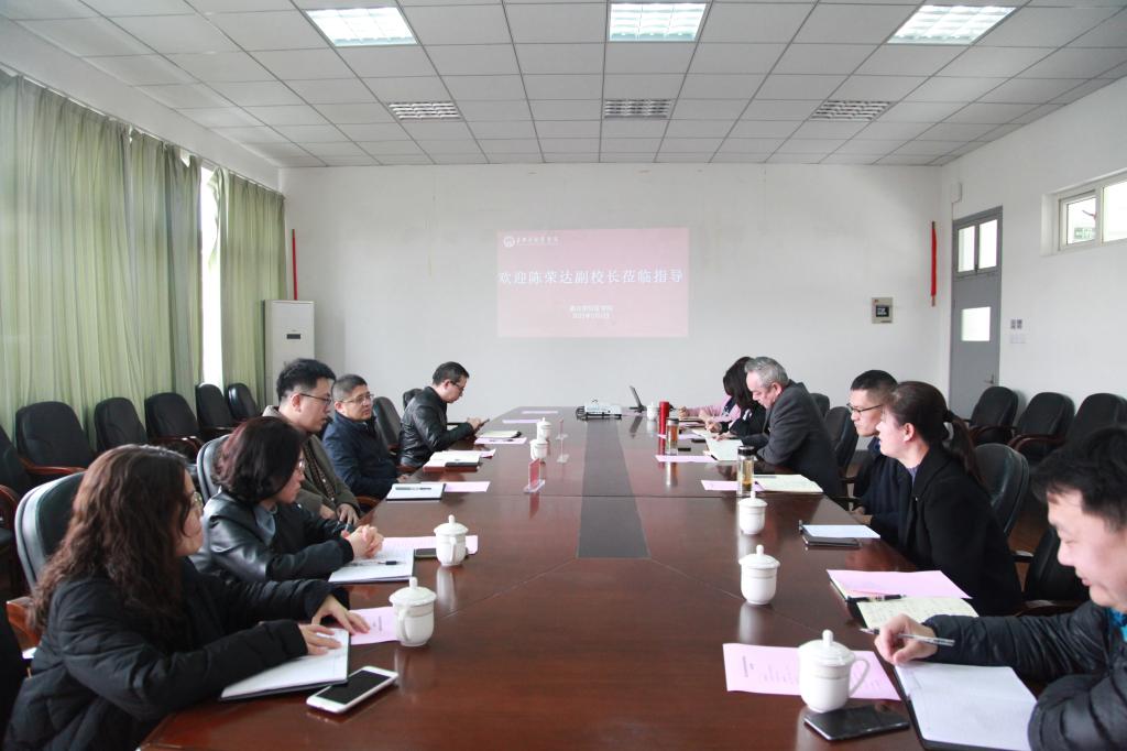 3月7日,副校长陈荣达、科技处处长周宏伟一行莅临9778818威尼斯听取科研工作汇报。9778818威尼斯党委书记陈云飞、副院长潘巍巍、党委副书记李联钊及学院科研骨干教师参加会议,会议由周宏伟主持。