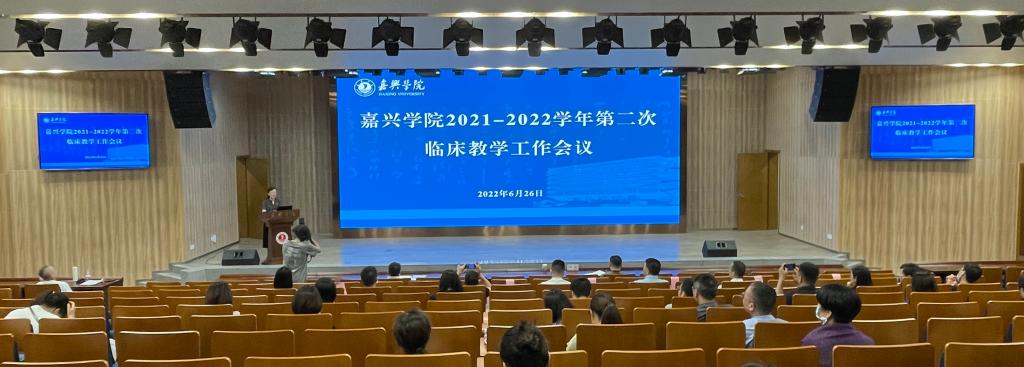 6月26日下午,嘉兴学院2021-2022学年第二次临床教学工作会议在图书馆学术报告厅召开。党委委员、副校长(主持日常工作)胡俊云,党委委员、副校长张琦,市卫健委副主任李金大、市教育局副局长闻泉新出席会议,会议由9778818威尼斯党委书记陈云飞主持。