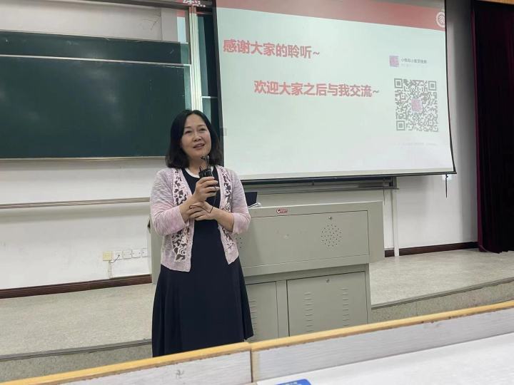 徐老师于2021年9月至2022年6月期间,在北京大学护理学院做访问学者。在讲座中,徐鋆娴老师从“初识北大”、“教学工作”、“科研工作”、“生活与感悟”介绍了自己访学的基本情况。在参与教学和科研工作中,北京大学护理学院孙宏玉教授团队严谨的学术态度和浓厚的学术氛围给徐老师留下了深刻的印象,团队教师们严谨的学术态度以及每周投入大量时间和精力组织组会及课题推进会,促成了高质量科研成果的不断产生。最后,徐鋆娴老师表示,希望同学们以北大护理的严谨治学精神勉励自己,注重隔热积淀,同时从关爱自己出发,正确认识自己,关爱家人,进而提升自己的职业素养,能够在进入临床实践和工作时关爱护理对象。