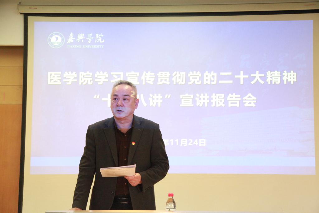 陈云飞表示,党的二十大报告高屋建瓴、视野宏阔,博大精深、内涵丰富,具有强大的历史穿透力、思想引领力、政治动员力、时代感召力。全院师生要以此次宣讲为契机,持续深入学习宣传贯彻党的二十大精神,持续兴起学习宣传贯彻党的二十大精神的热潮。他强调,全院教职工要牢记为党育人,为国育才的使命,努力把嘉兴学院9778818威尼斯建成浙北地区医学教育高地,成为省内一流,全国知名的高等9778818威尼斯校。