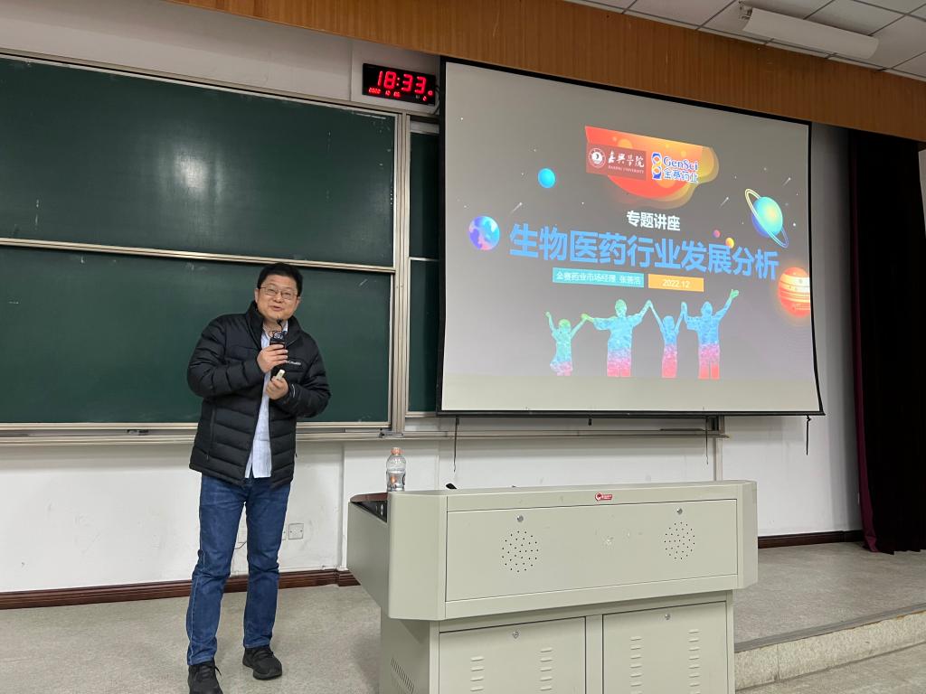 金赛公司集自主研发、生产、营销和服务于一体,是国内规模最大的基因工程制药企业和亚洲最大的重组人生长激素生产企业,也是中国首个“基因工程药物质量管理示范中心”,获得国家科技进步二等奖。市场部张善浩经理为同学们作了专题讲座《企业视角的医药行业发展趋势分析》,着重阐述了国内生物医药行业的现状,并介绍了金赛药业的发展情况及主要产品。人力资源部陈庆芬经理介绍了金赛药业的人才培养体系和员工成长空间,得到学生们的积极讨论和热烈欢迎。