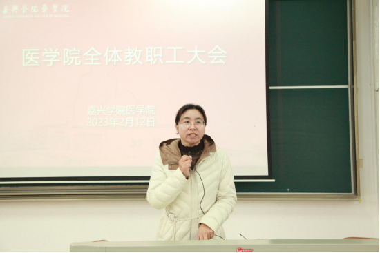 党委书记陈云飞通报了学院新的一年人才引进计划。他表示,新的一年,学院将继续增加医学人才引进力度,采取多项措施落实人才引进工作。陈云飞还就新学期重点工作提出要求,他强调,要保持良好的精神状态,全力做好临床医学专业认证迎评,积极启动药学专业认证工作、学位点申报工作以及科研项目的申报,同时强调加强学院的安全稳定工作,切实保障学生的就业率和就业质量。最后要求,2023年要紧紧围绕党的二十大精神学习,不断加强党的组织建设和师生员工的政治理论学习。