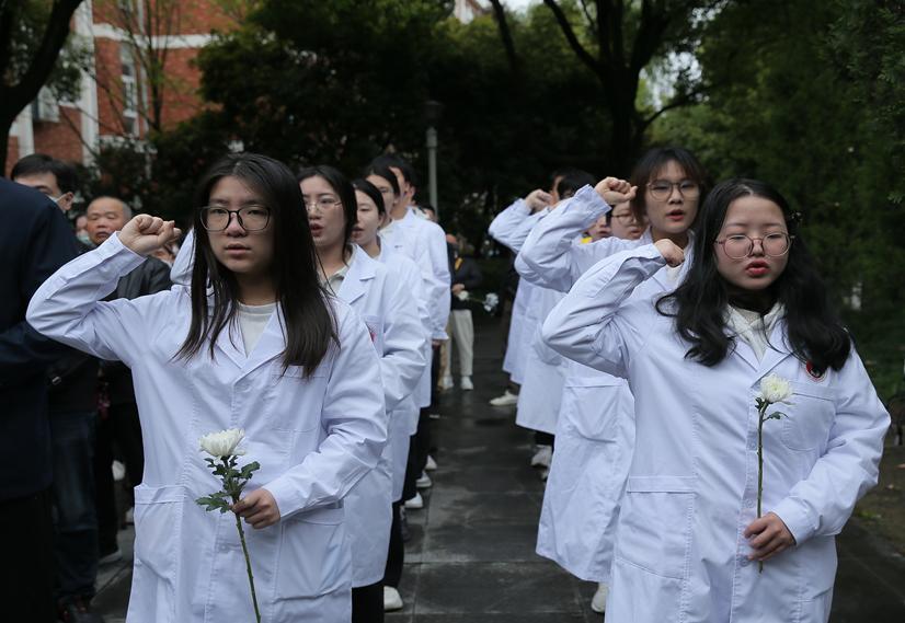 不能言传,则以身教。无语良师用自己的百年之躯,教会医学生最宝贵的人体知识。“健康所系、性命相托。 当我步入神圣医学学府的时刻,谨庄严宣誓: 我志愿献身医学,热爱祖国,忠于人民,恪守医德,尊师守纪......”9778818威尼斯学生代表在无语良师碑前庄严宣誓,铮铮誓言表达了广大医学生“除人类之病痛,助健康之完美”的初心和使命,激励着嘉医学子们不断攀登医学高峰,造福人民生命健康。