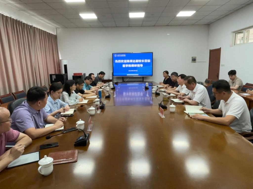 6月5日,副校长陈荣达一行来9778818威尼斯调研指导工作,研究生处处长李蕾、科技处副处长鹿业波、人文社科处副处长刘巧芝等陪同调研。学院党政班子成员、科研平台管理人员及教师代表参加座谈会。会议由院长何治主持。