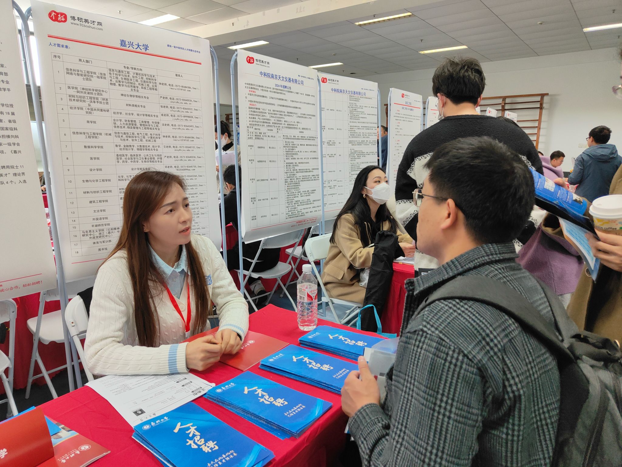 当日下午,张雅玲老师还参加了在南京大学仙林校区方肇周体育馆举办的 2024年春季全国博士、博士后高级人才巡回签约洽谈会,接待毕业生30余人,详细介绍了我校岗位需求、人才层次设定和福利待遇等。功以才成,业由才广。嘉兴大学以“海纳百川”的宽大胸襟、精准优厚的礼遇政策,群音荟萃的学术环境、温馨周到的服务保障邀请优秀毕业生携手回“嘉”,共创辉煌。