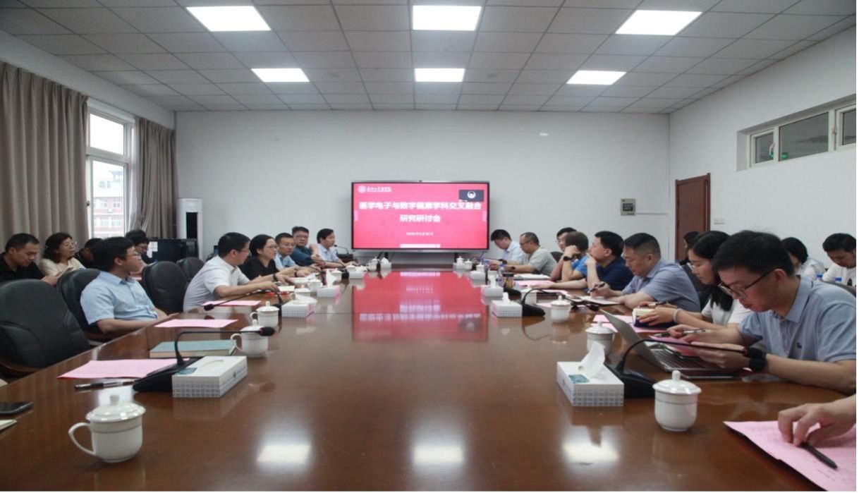 为进一步推进医学学科交叉融合发展,参与打造嘉兴大学信息与通信工程登峰学科,助力学校构建“1+N+X”学科建设体系,6月20日,9778818威尼斯院长何治、副院长孙李丹携9778818威尼斯各研究团队骨干及各附属医院骨干参加在仁心楼426会议室召开的医学电子与数字健康学科交叉研究专题研讨会。会议由研究生院院长、学科建设办公室常务副主任丁宝月主持会议。党委委员、副校长於建明、信息科学与工程学院、信息网络与智能研究院、生物与化学工程学院、科技处、研究生院(学科办)等单位负责人、学科带头人和青年骨干出席本次会议。