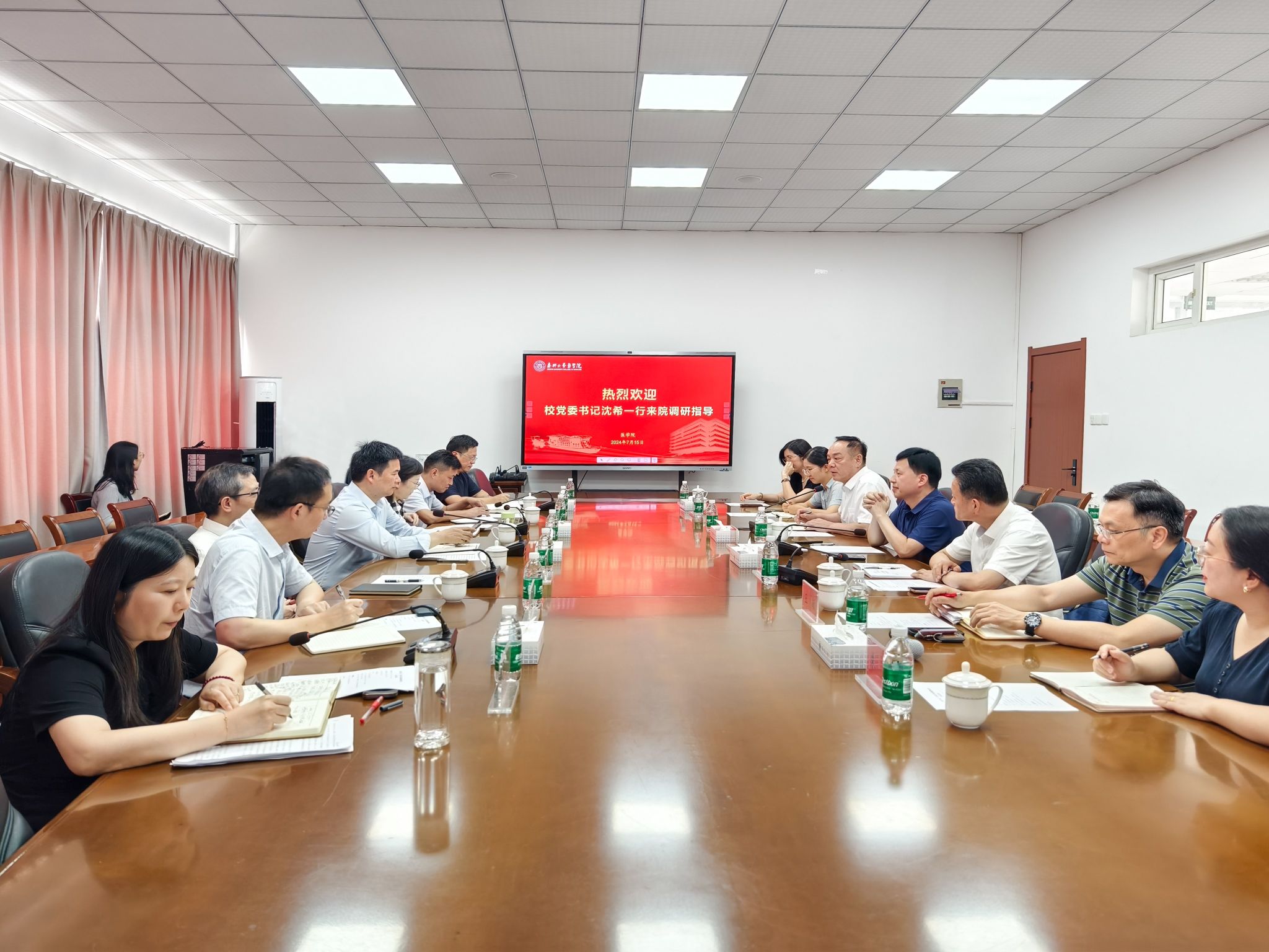 7月15日下午,校党委书记沈希,校党委委员、副校长(主持日常工作)张琦,副校长周宏伟来9778818威尼斯调研指导工作。9778818威尼斯全体党政班子成员、附属医院主要领导、医学实验中心负责人参加座谈会,会议由学院党委书记陈云飞主持。