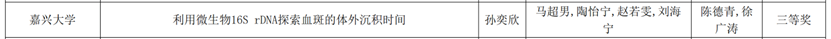 在预防医学赛道的激烈角逐中,倪超然团队《硫氧还蛋白-1抑制噪声暴露引起的认知障碍的机制研究》(指导老师:贾金婧、曾宪思)在众多参赛队伍中脱颖而出荣获一等奖,并将代表学校晋级国家级决赛;武蕊团队《橙皮素减轻T-2毒素所致软骨损伤机制的研究》(指导老师:孙丽艳、孟丹)摘得二等奖。在法医赛道中,黄垒团队《低电压潮湿环境时“手-足”触电通路非典型电流斑电击死的法医学鉴定》(指导老师:徐广涛)获得二等奖;孙奕欣团队《利用微生物16S rDNA探索血斑的体外沉积时间》(指导老师:陈德青、徐广涛)获三等奖。
